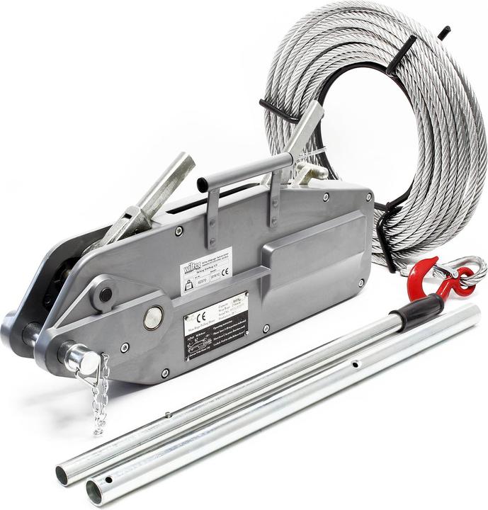 A stable rope winch is ideal for pulling, moving, and holding heavy loads, making it suitable for areas such as automotive, boating, camping, gardening, forestry, leisure, hobbies, and many more. This manual winch is corrosion and weather-resistant, providing independence from electricity. It has a load capacity of up to 3200 kg. The power transmission occurs through a 20-meter-long rope with a diameter of 16 mm. The rope is wound on a hand reel and features a load hook with a safety latch at its end. Additionally, the winch is equipped with a shear pin, making it safe from overload. For comfortable operation, the operating lever has a rubberized handle.